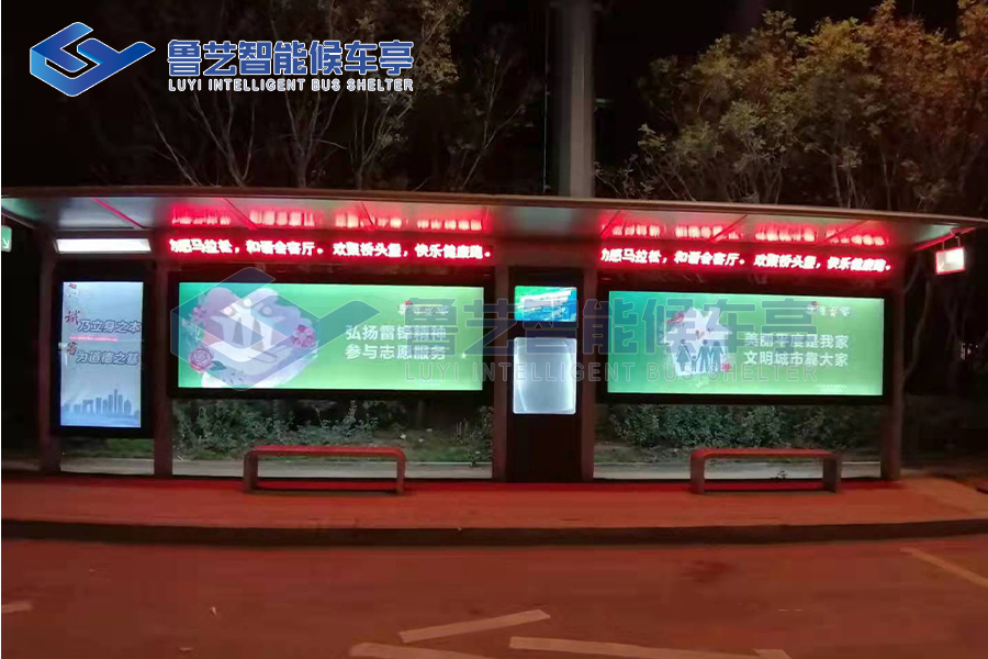 山東青島平度市完成安裝智能候車亭 魯藝公交站臺廠家正連夜進行電子調(diào)試